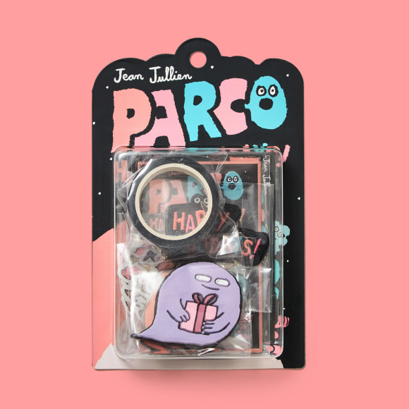 PARCO HAPPY HOLIDAYSキャンペーンビジュアルを施したブリスターパックのに計7点(アルミニウムマグネット、フレイクシール、ピンバッジ、マスキングテープ、ワッペンシール、ラバーマグネット、ミニカード)入ったオリジナルギフトとなります。