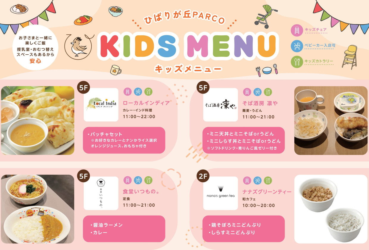 ひばりが丘パルコのレストラン・カフェではお子様向けのキッズメニューをご用意しております!