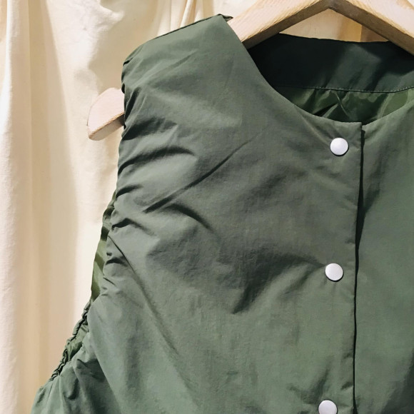 袖ぐりと裾がゴム仕様になっており、薄い中綿が入っているので膨らみすぎず秋口にぴったりのアイテムです★