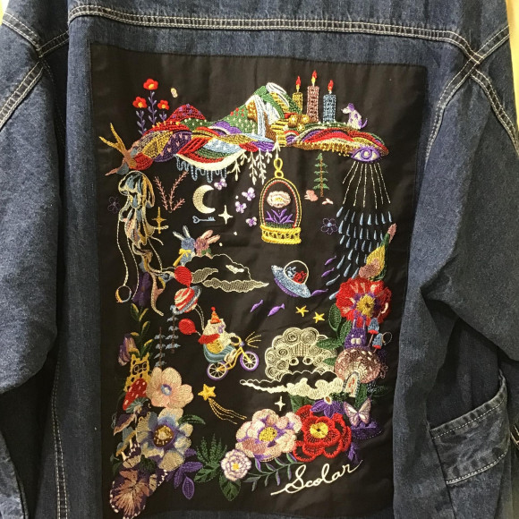 自然のモチーフにスカラーちゃんや猫のアップリケなど、スカラーらしさ満点の刺繍が前面にも背面にもたっぷりと施されています♪