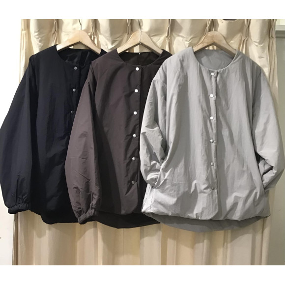 * ナイロン軽量薄中綿ノーカラーブルゾン *