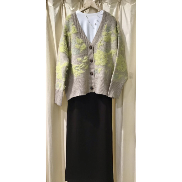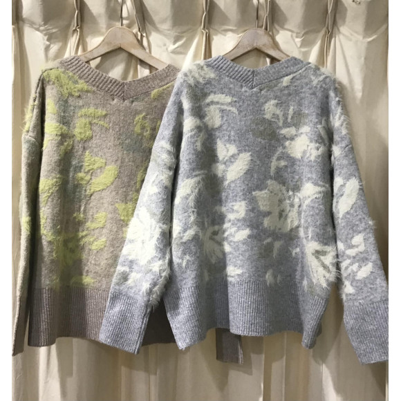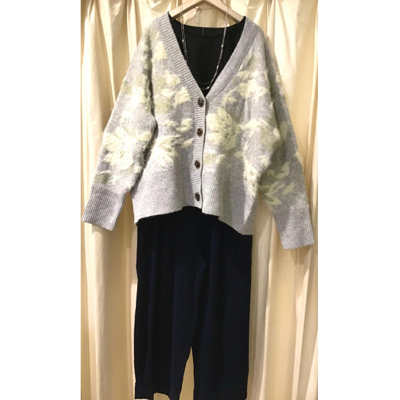 もちもち×フェザーヤーン ニット 花柄ジャガード Vネック カーディガン