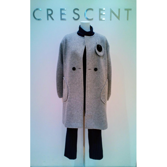 ★ウール.ポリ.ナイロン丸ブローチ付きコート