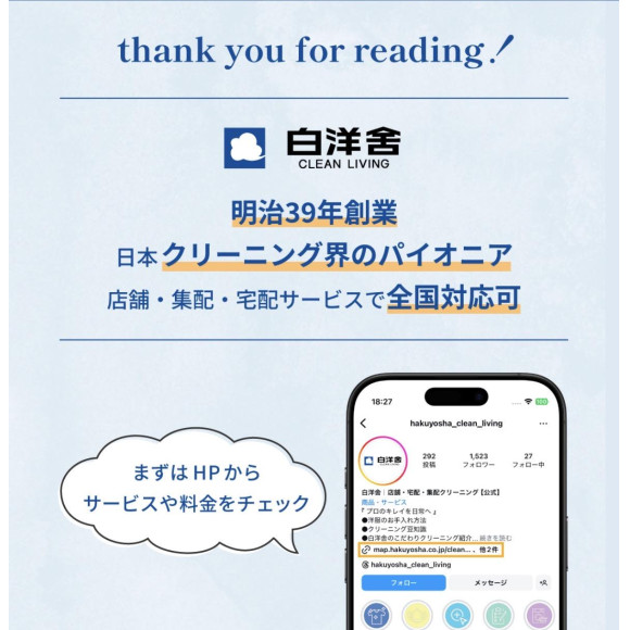 お気に入りを長く楽しむためにも、ぜひ一度白洋舎のクリーニングをお試しくださいね