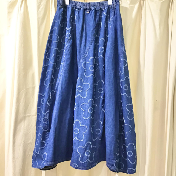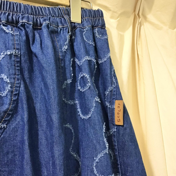 大きな波柄とジャガードの花柄が目を引くデニムスカート!︎︎︎☺︎◎