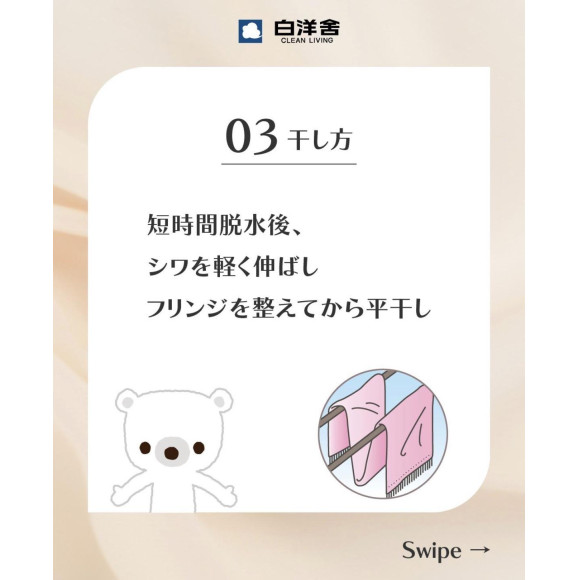 ⭐︎ 最後のすすぎで柔軟仕上げ剤を使うと、ふんわり仕上がります