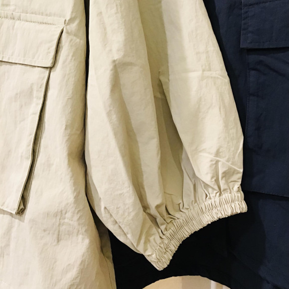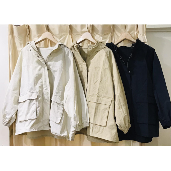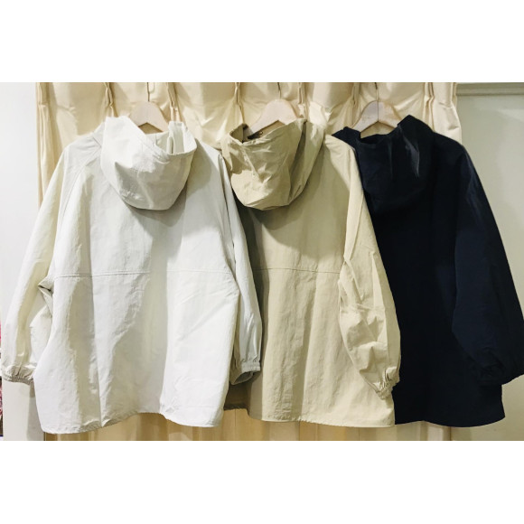 撥水加工でフード付きの軽量アウターです。