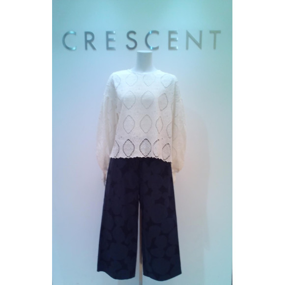 ヒッコリーデニムソフト顔料大花·丸プリント パンツ