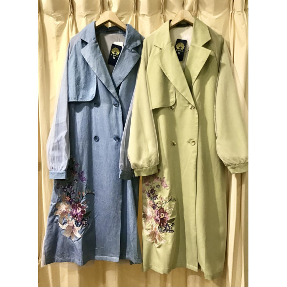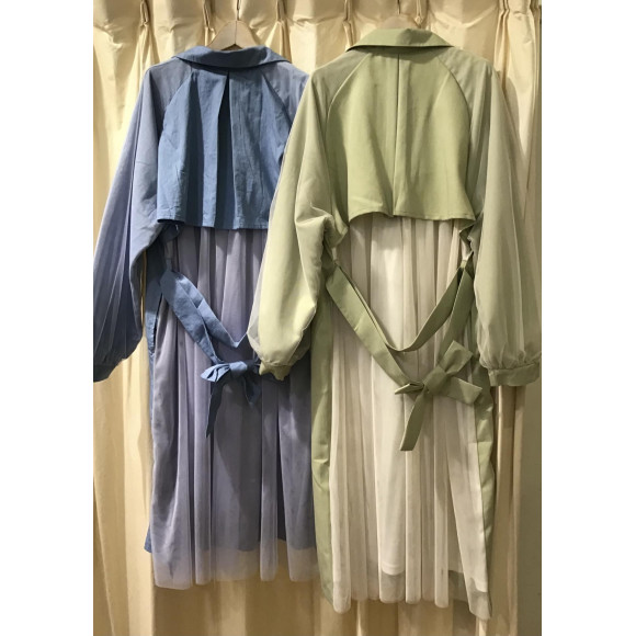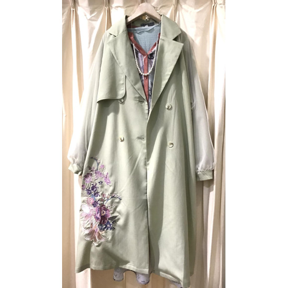 動くたびにひらひらなびくチュールが、どこから見てもかわいい刺繍ロングコート!