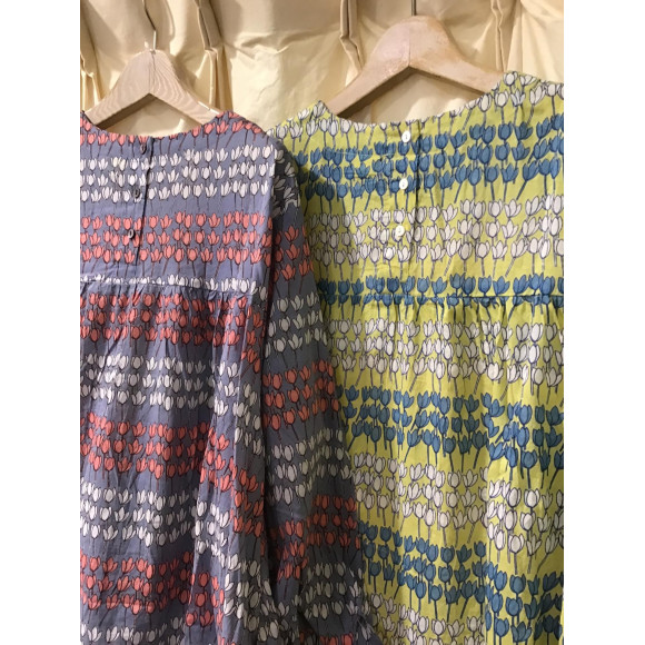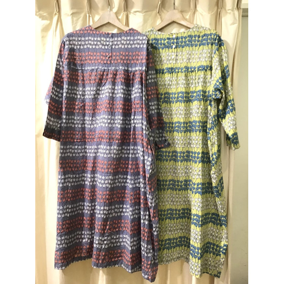 後ろは切り替えでギャザーを入れて、一枚 でサマになるワンピースです。