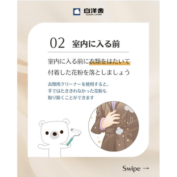 お家でゆっくりくつろぐために、簡単にできる「花粉を家に持ち込まないポイント」をご紹介します