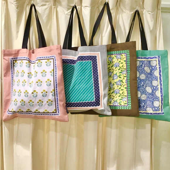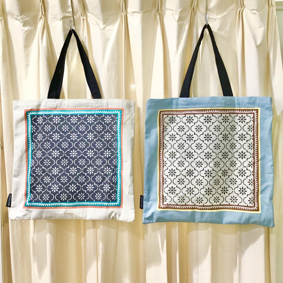 45×45cmの大きなスクエア型のマチなしトートバッグ♪